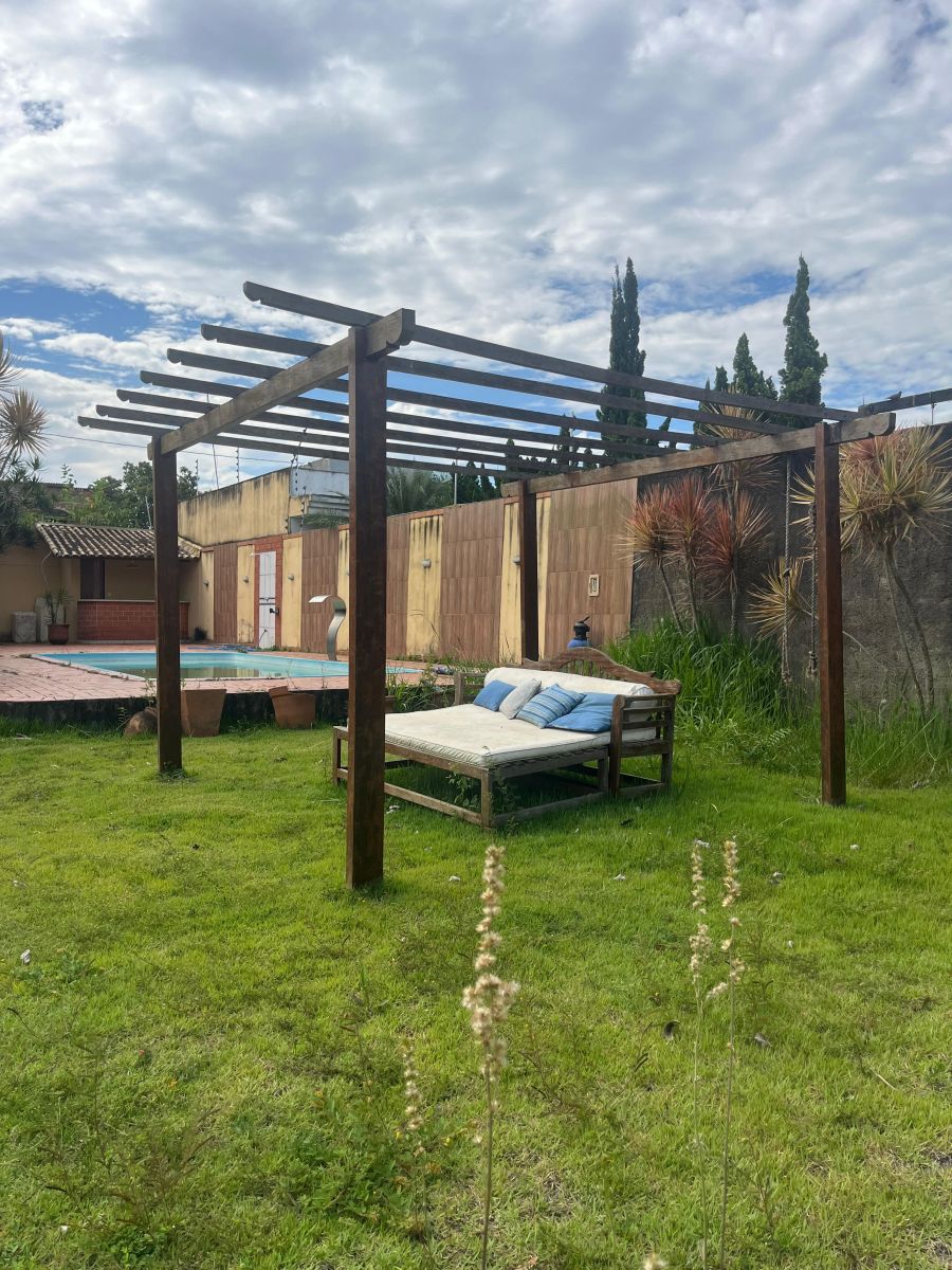 Composto de: 1 suíte, banheiro, cozinha, área gourmet com churrasqueira, piscina e ampla área livre.