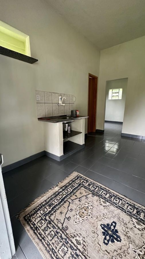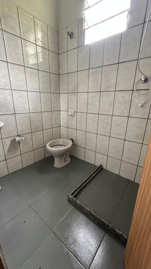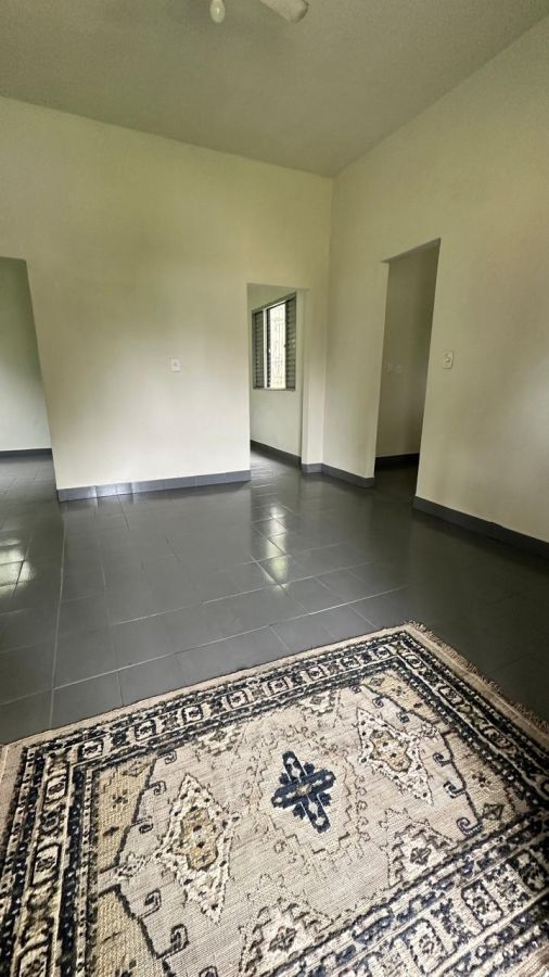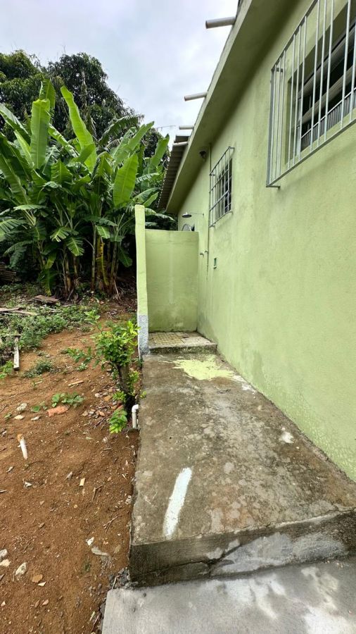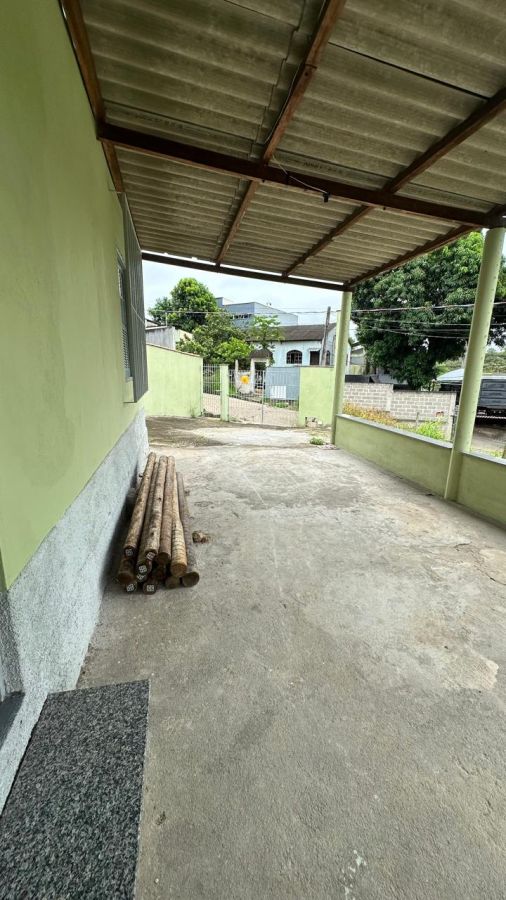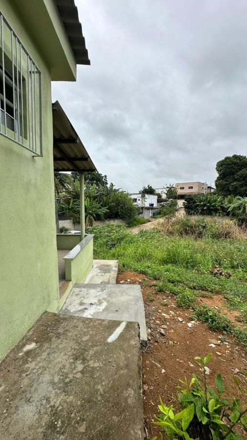 casa com 2 quartos, banheiro social, sala, copa/cozinha, área de serviço, varanda, garagem coberta e amplo quintal.