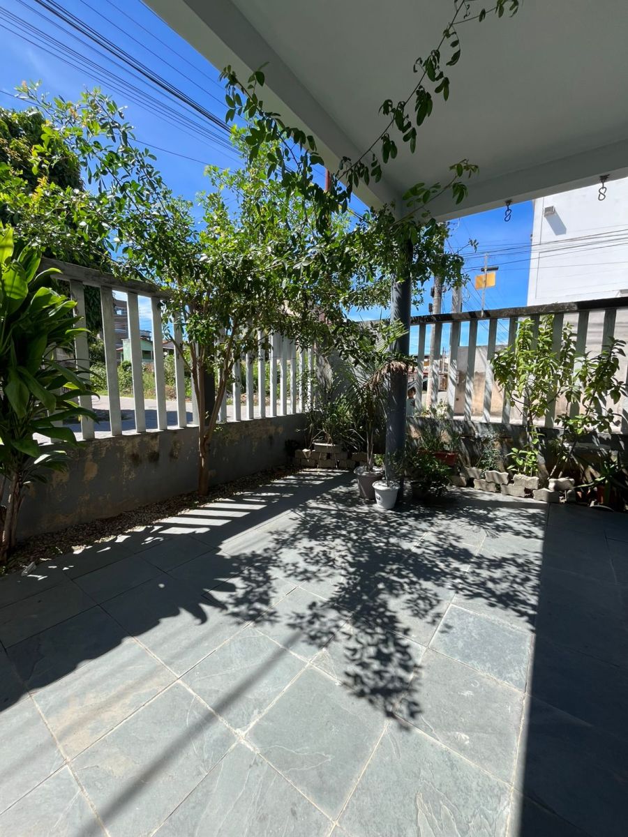 primeiro pavimento: 02 quartos com varanda, 01 banheiro, varandandão com área de serviço e cozinha.