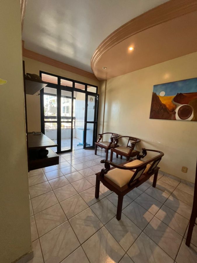 Apartamento mobiliado composto por: 2 quartos, sendo 1 suíte, banheiro social, sala, cozinha, varanda e garagem.