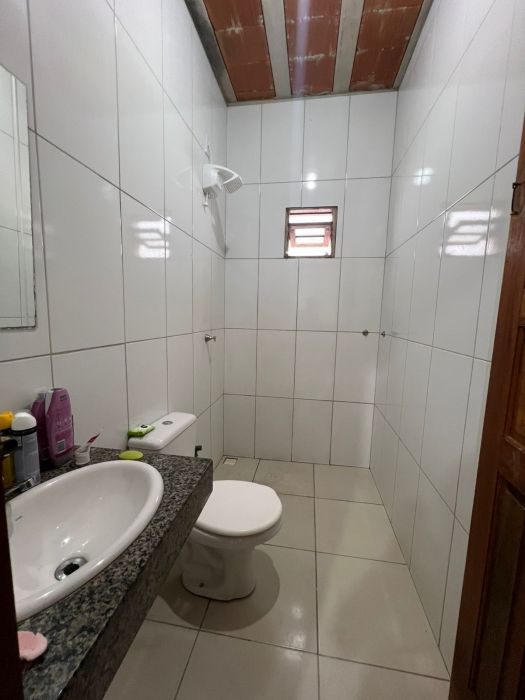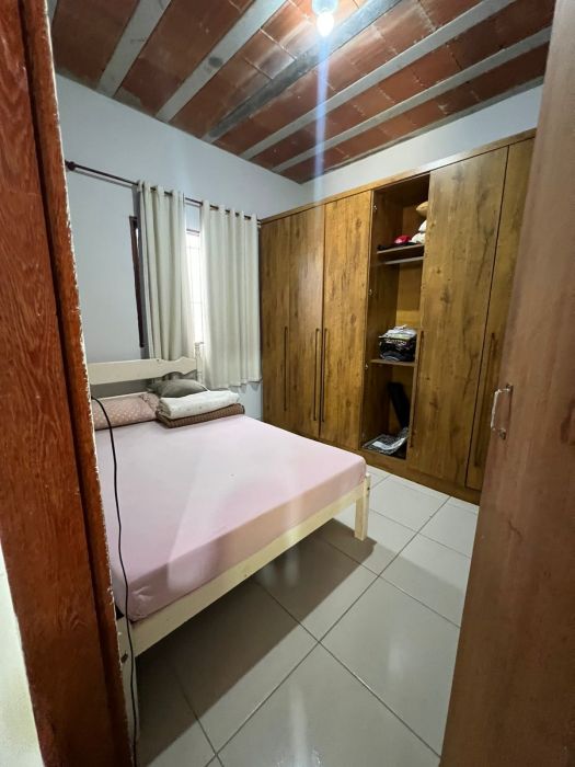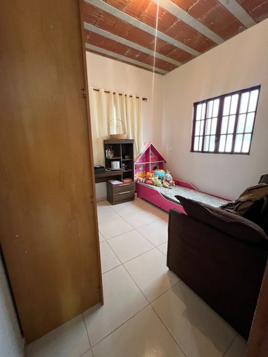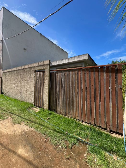 casa com 2 quartos, 1 banheiro, sala, cozinha, área de serviço, varanda e garagem.