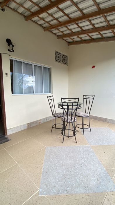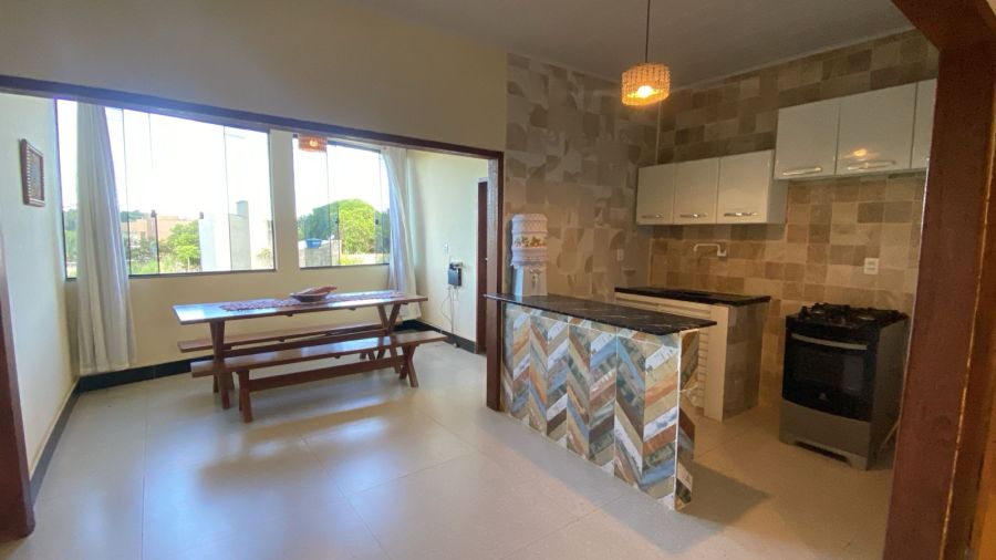 casa com 3 quartos, sendo 2 suites, sala de jantar, cozinha, lavanderia, banheiro social, sala de estar, varanda, garagem e quintal.