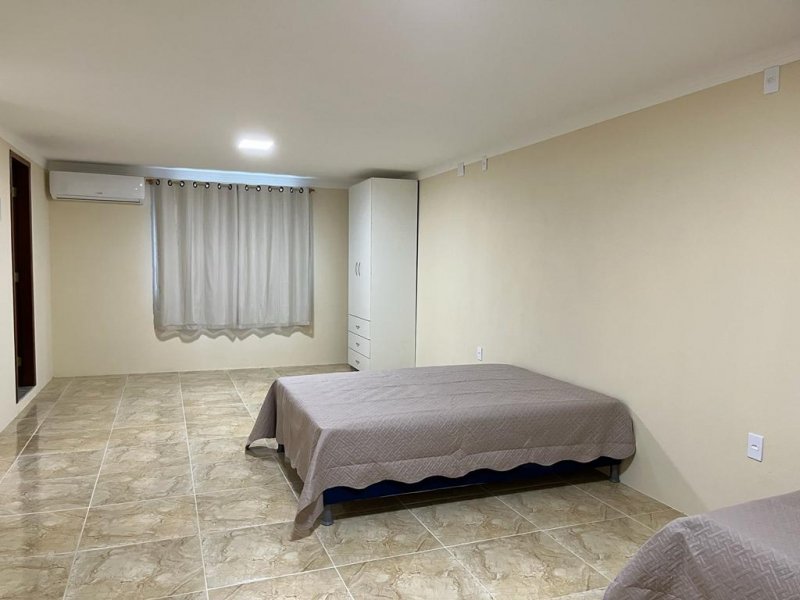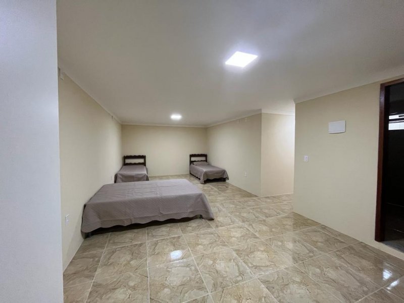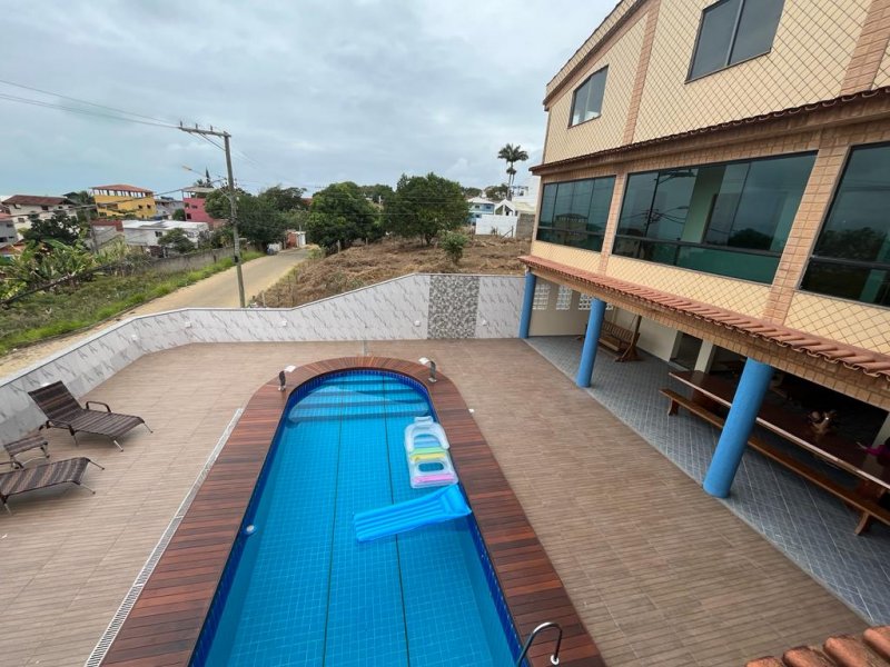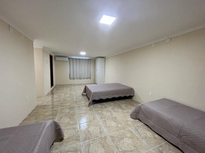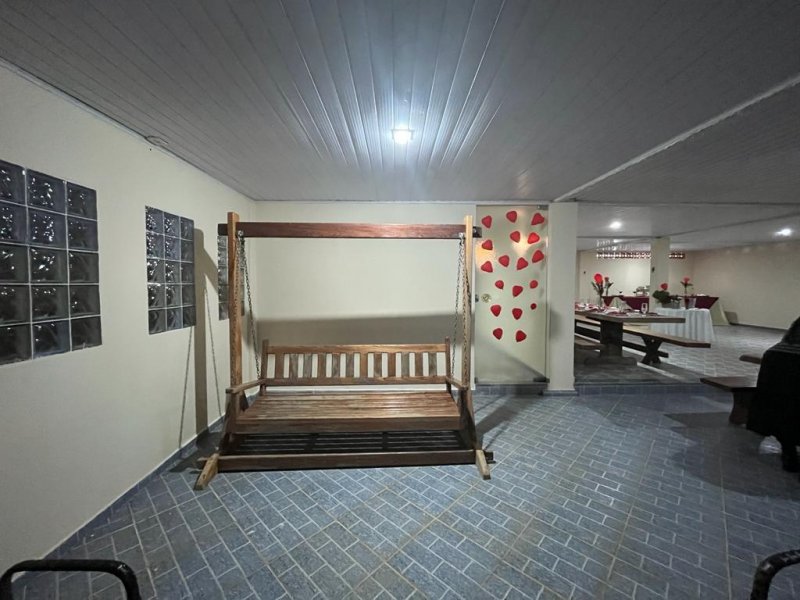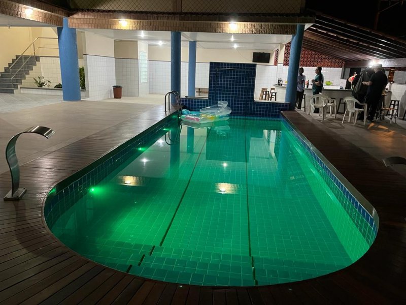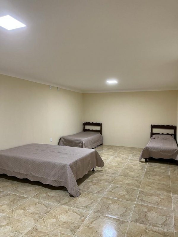 Composta por 07 suítes, sendo algumas delas suítes duplas, cozinha, área de churrasqueira, salão para pequenos eventos, barzinho, piscina com água aquecida e sauna.