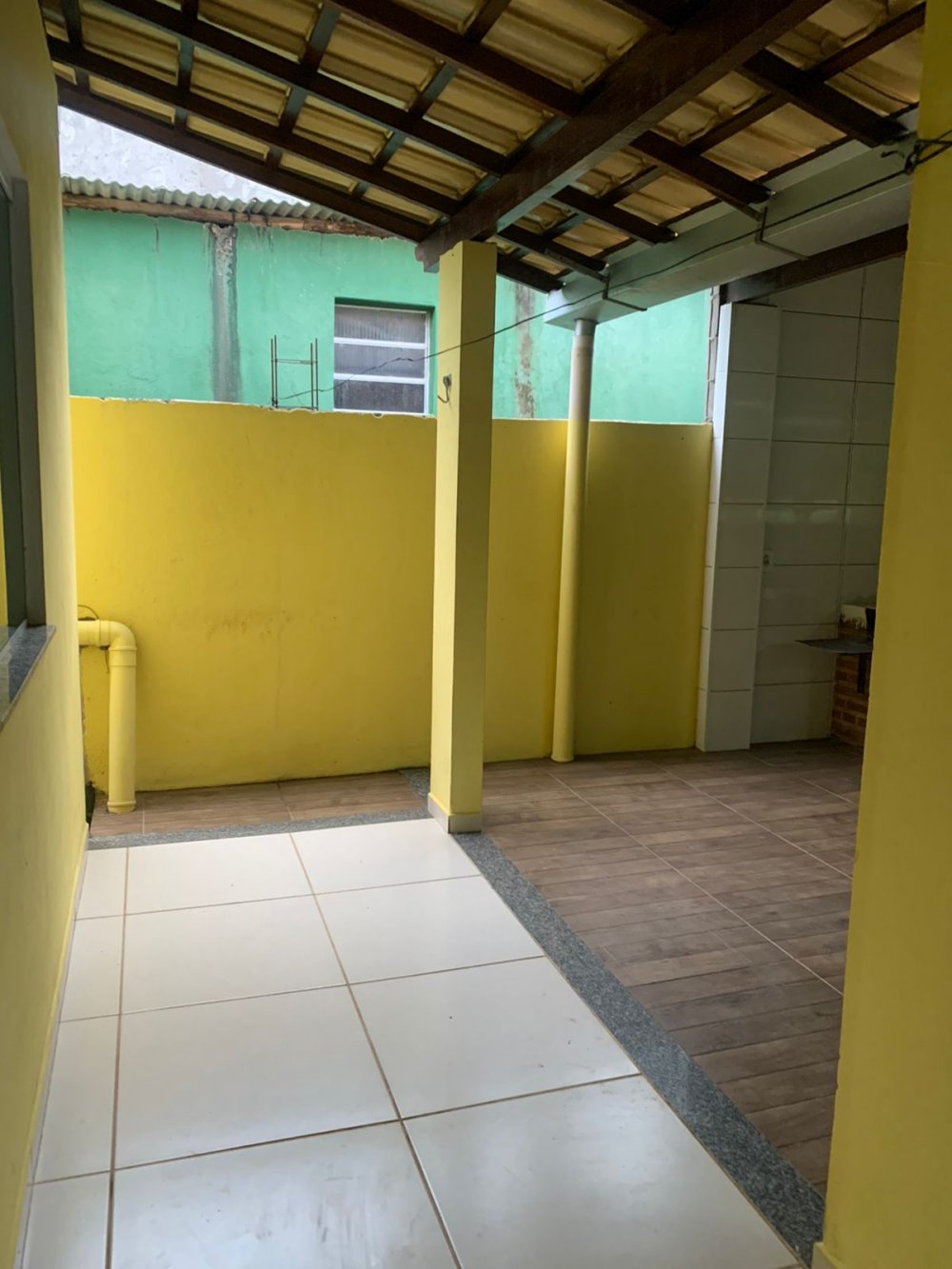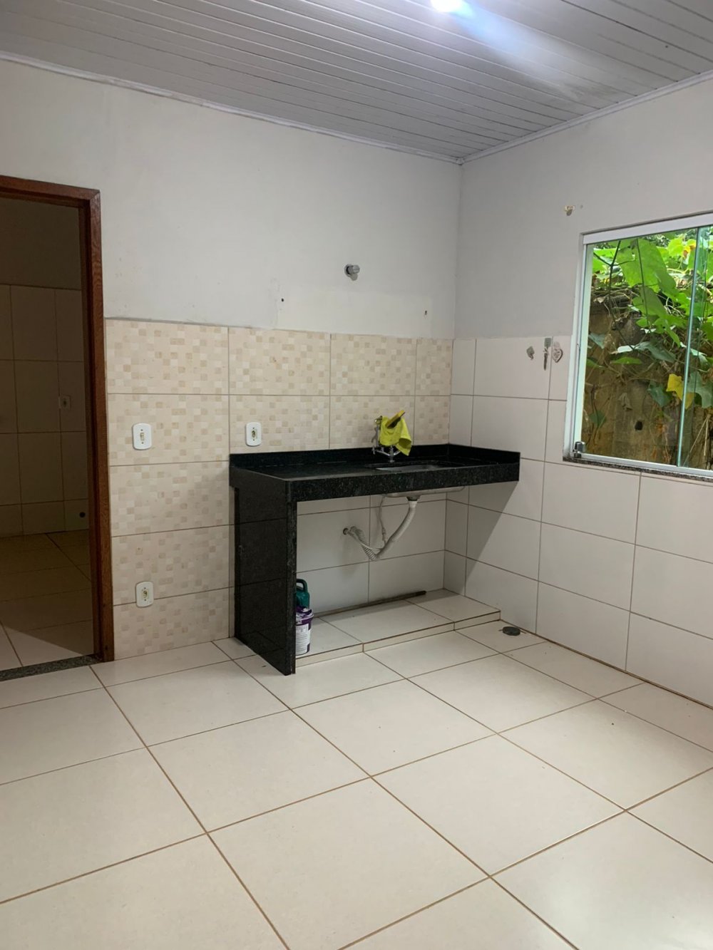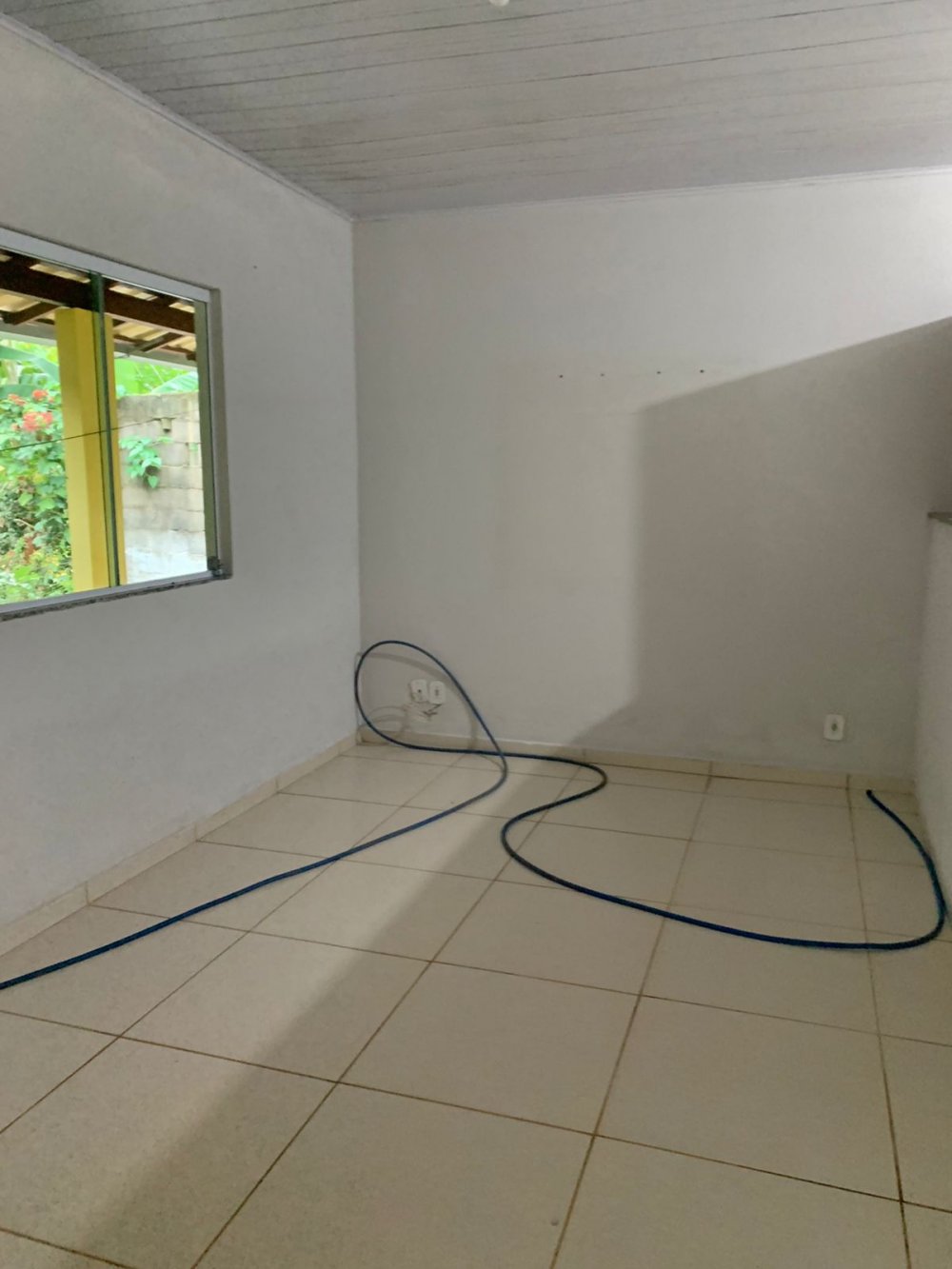 casa com 2 quartos, 1 banheiro interno, 1 banheiro externo, sala, cozinha, garagem, área gourmet e quintal.