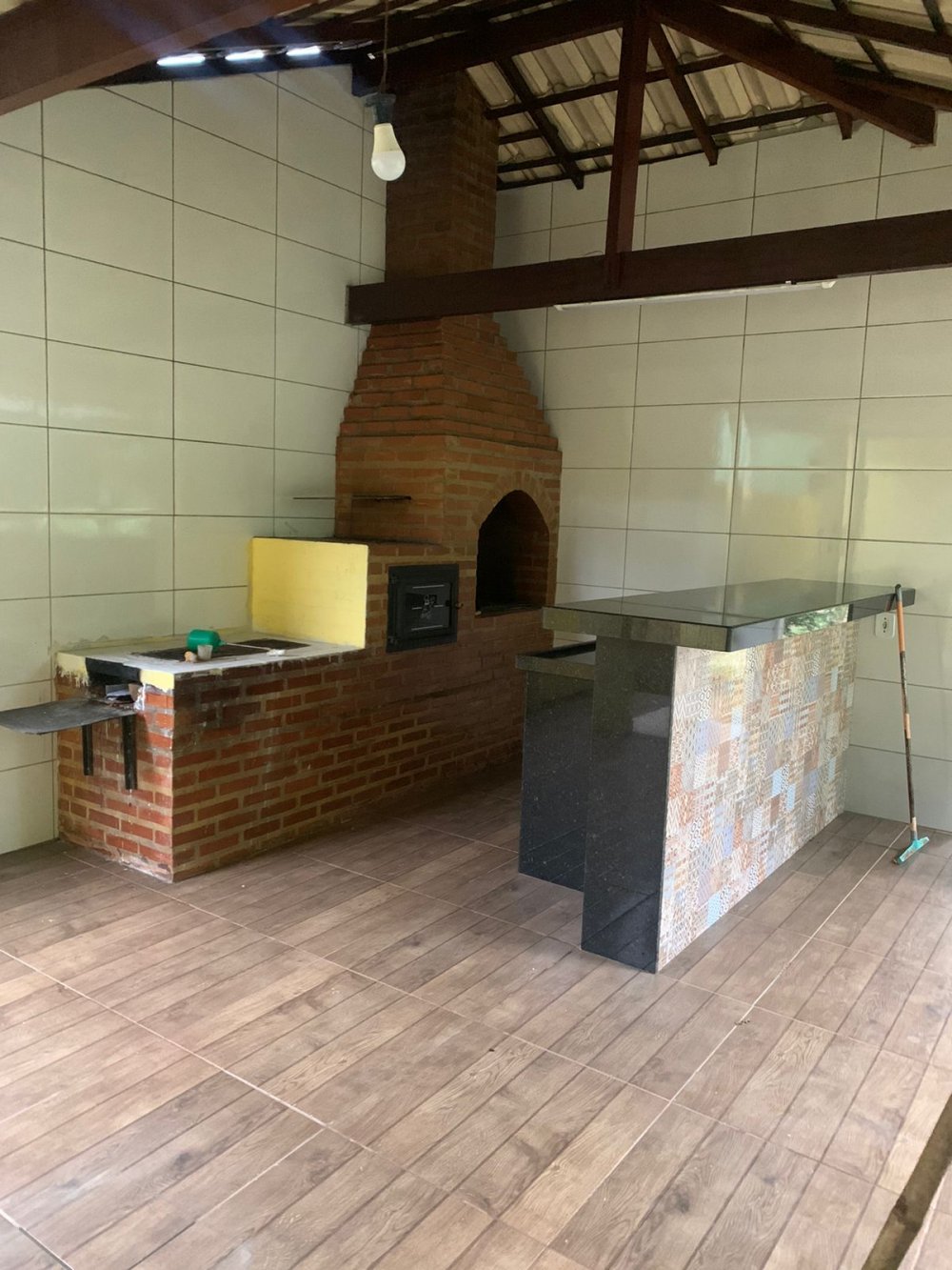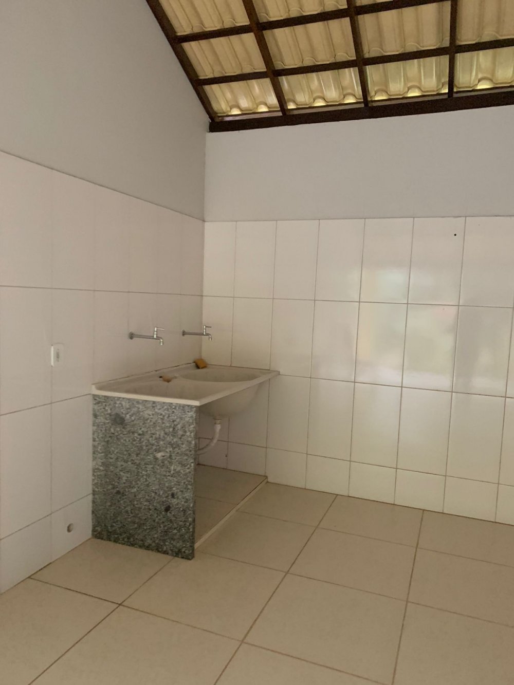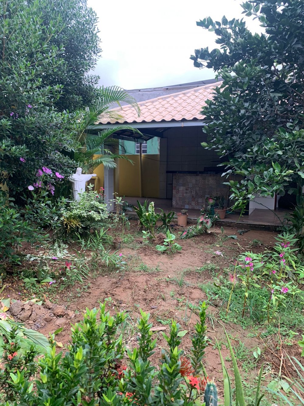 casa com 2 quartos, 1 banheiro interno, 1 banheiro externo, sala, cozinha, garagem, área gourmet e quintal.