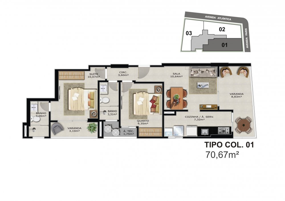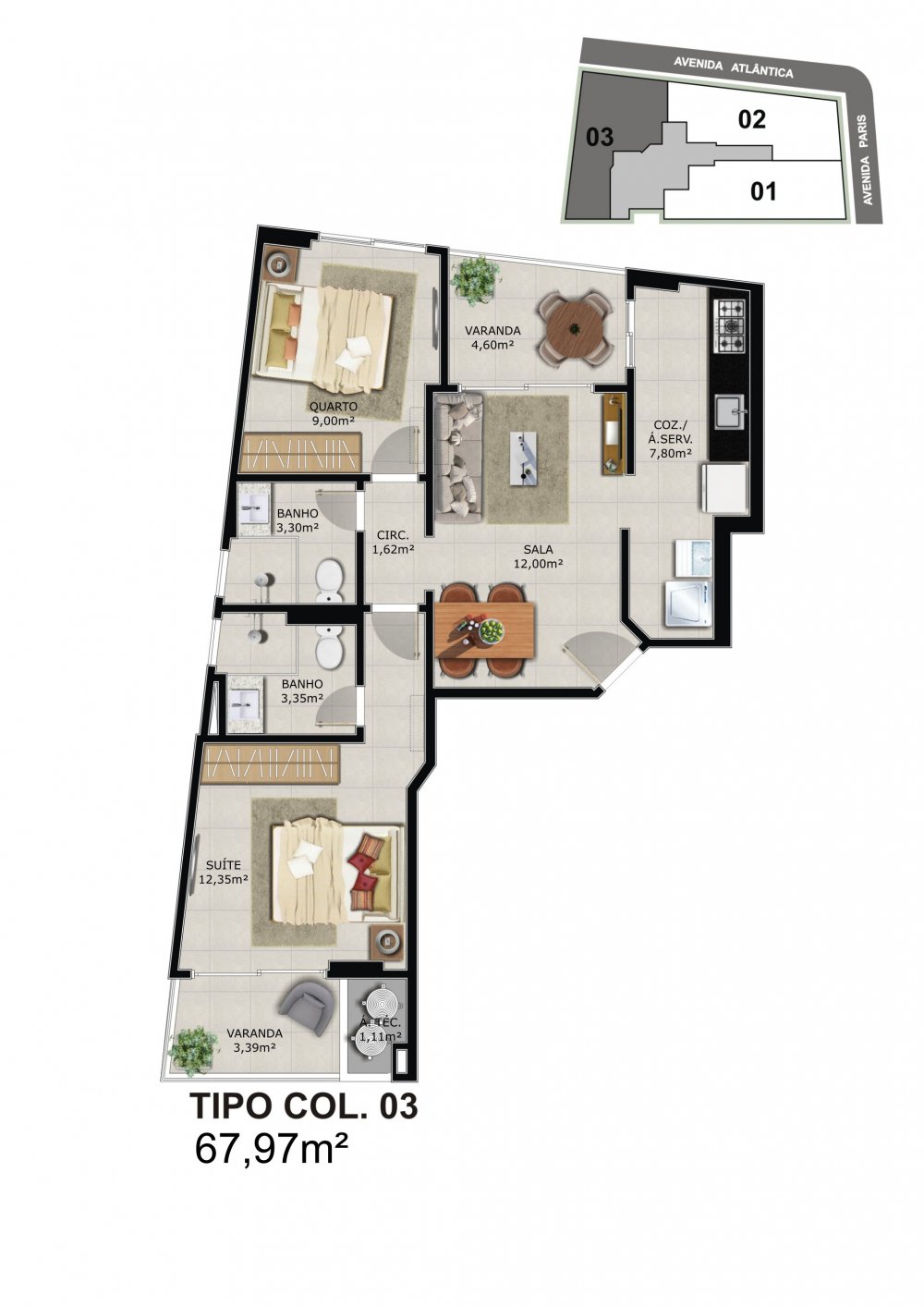 03 apartamentos por andar