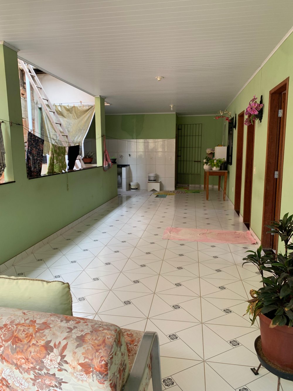 Pavimento térreo: 3 quartos, banheiro social, sala, copa/cozinha, varanda, área de serviço.