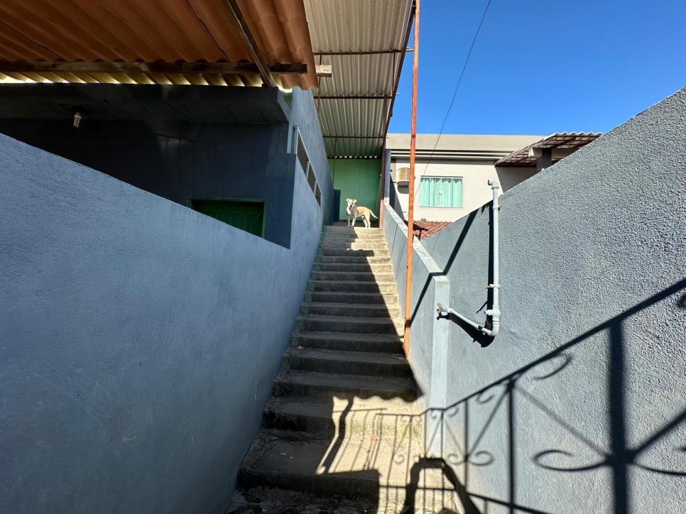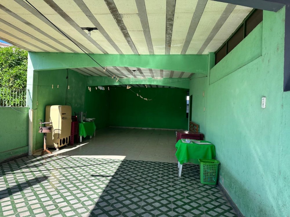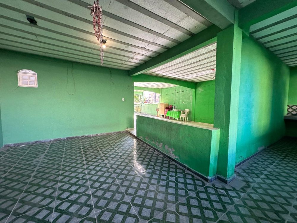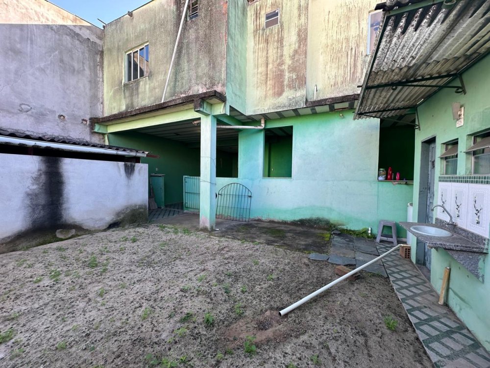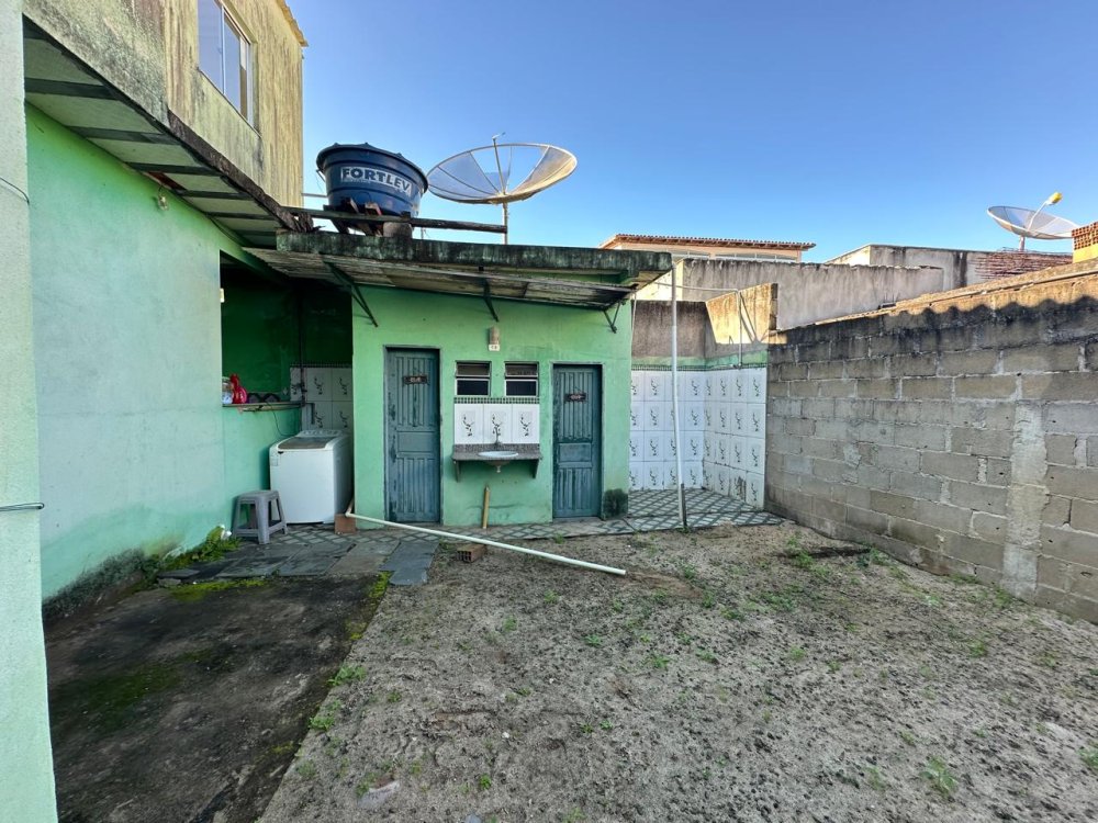 Primeiro pavimento: Lado direito: 1 quarto/sala, 1 banheiro, área de serviço, cozinha, varanda e garagem. Amplo espaço de garagens, quintal, dois banheiros externos, uma dispensa.