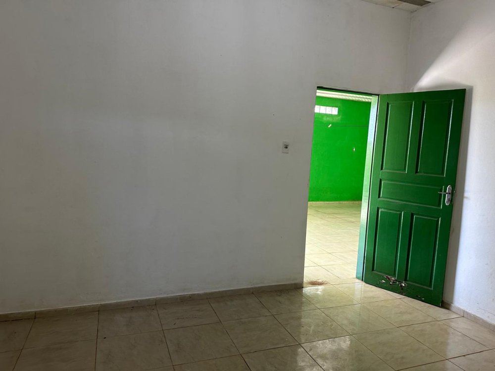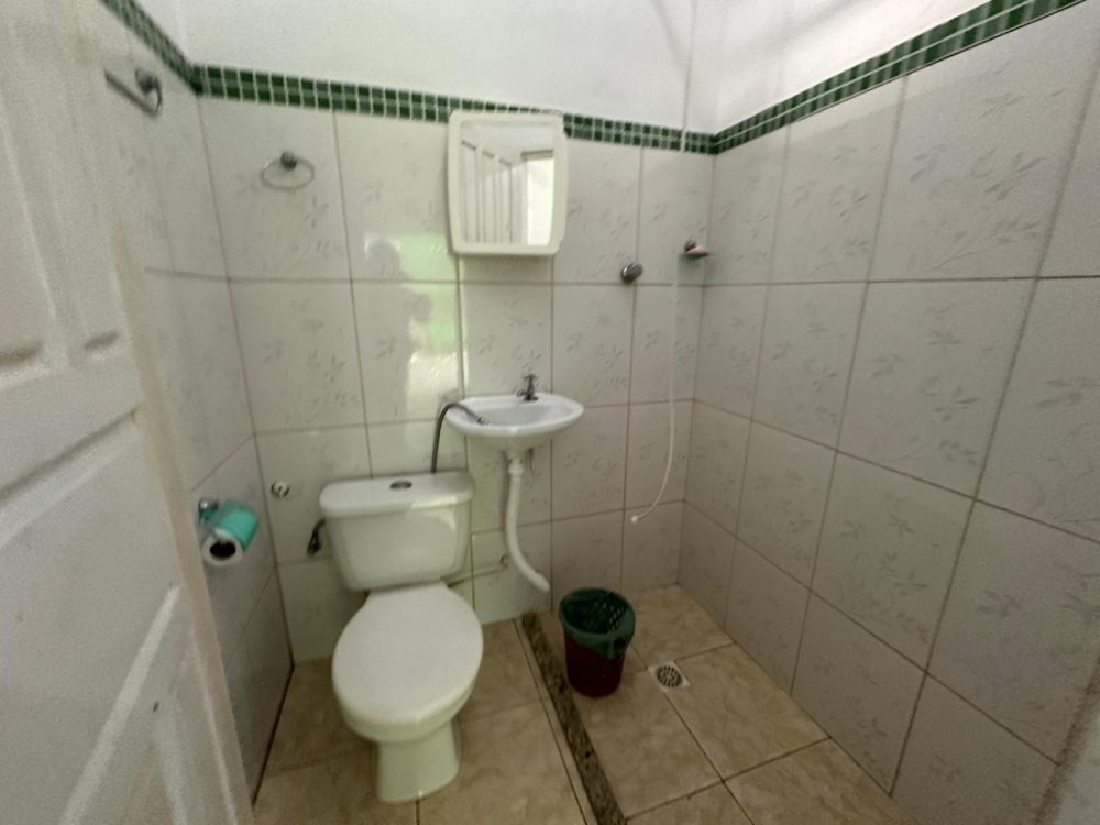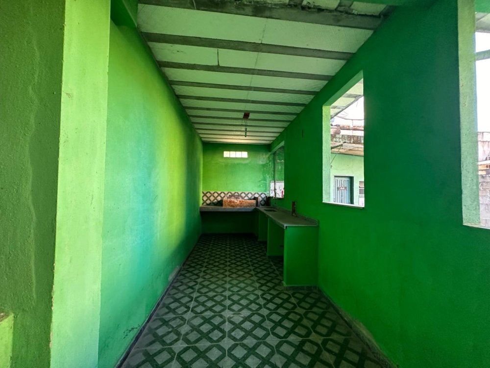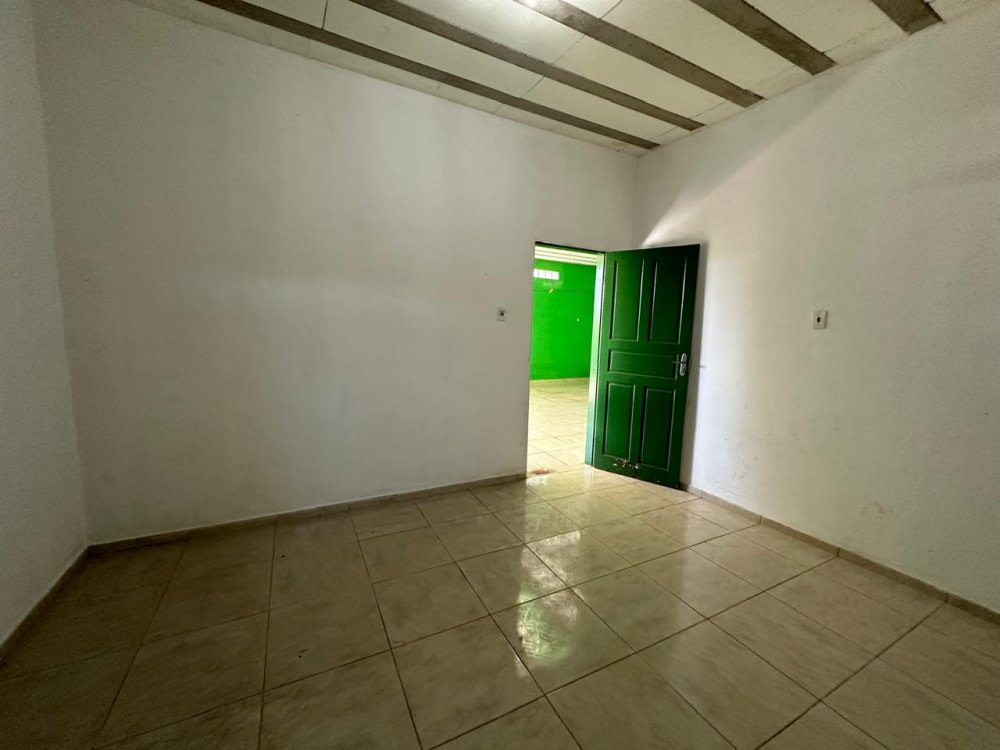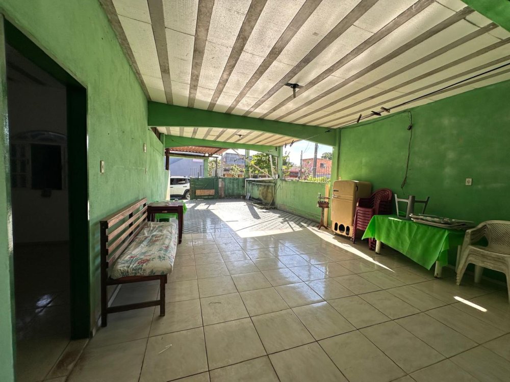 Primeiro pavimento: Lado direito: 1 quarto/sala, 1 banheiro, área de serviço, cozinha, varanda e garagem. Amplo espaço de garagens, quintal, dois banheiros externos, uma dispensa.