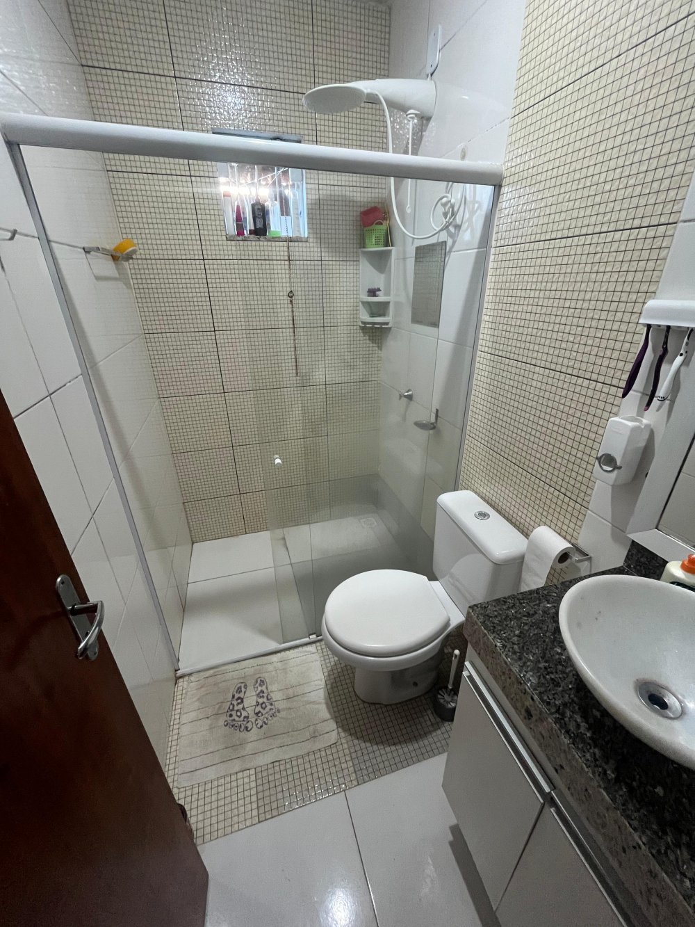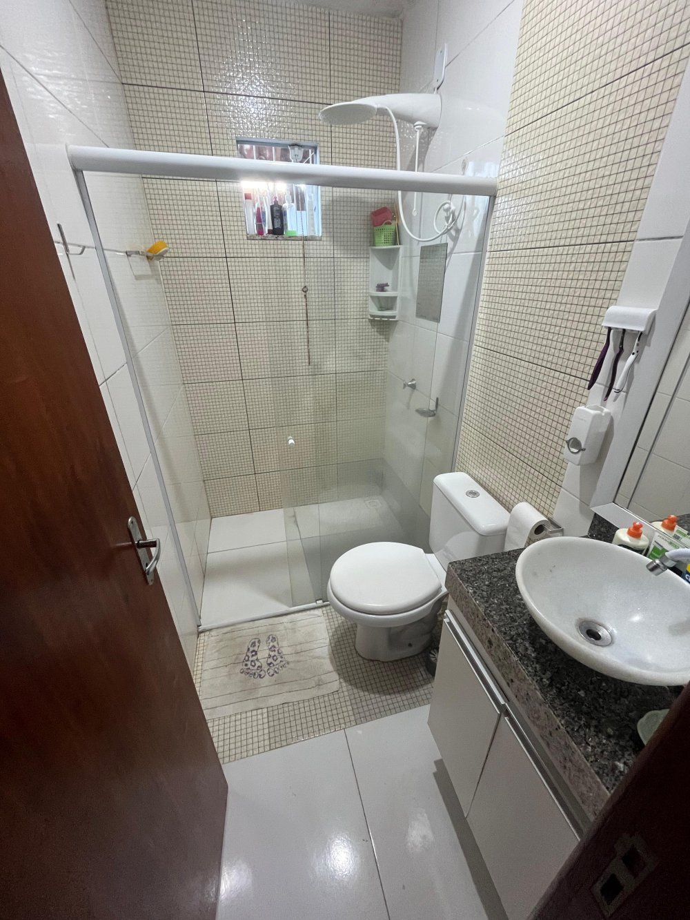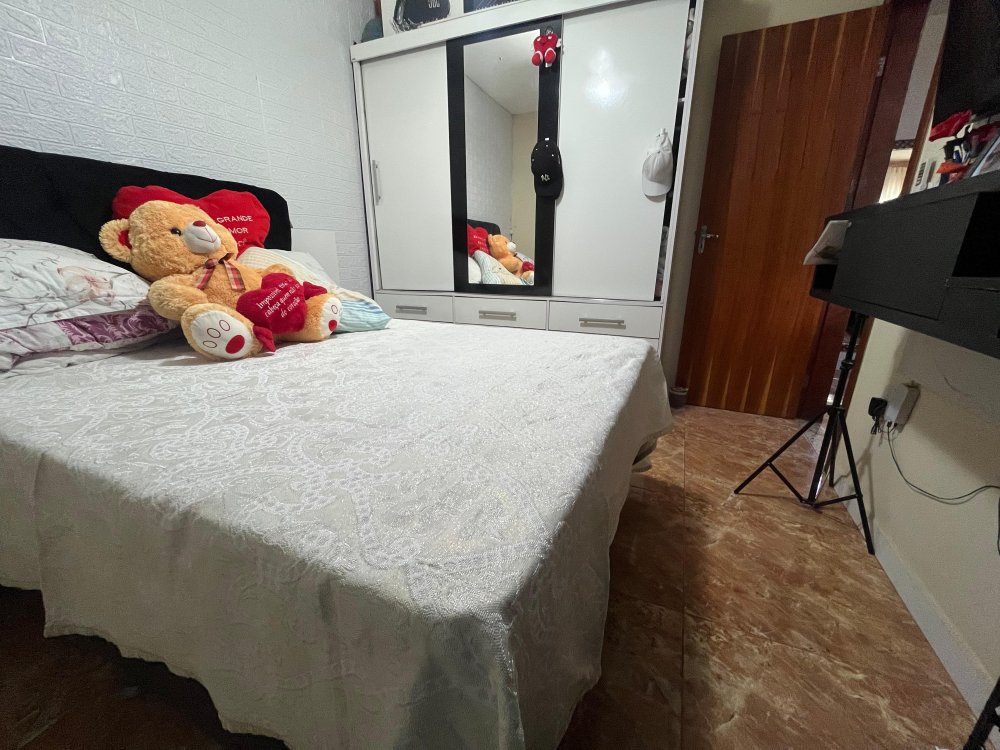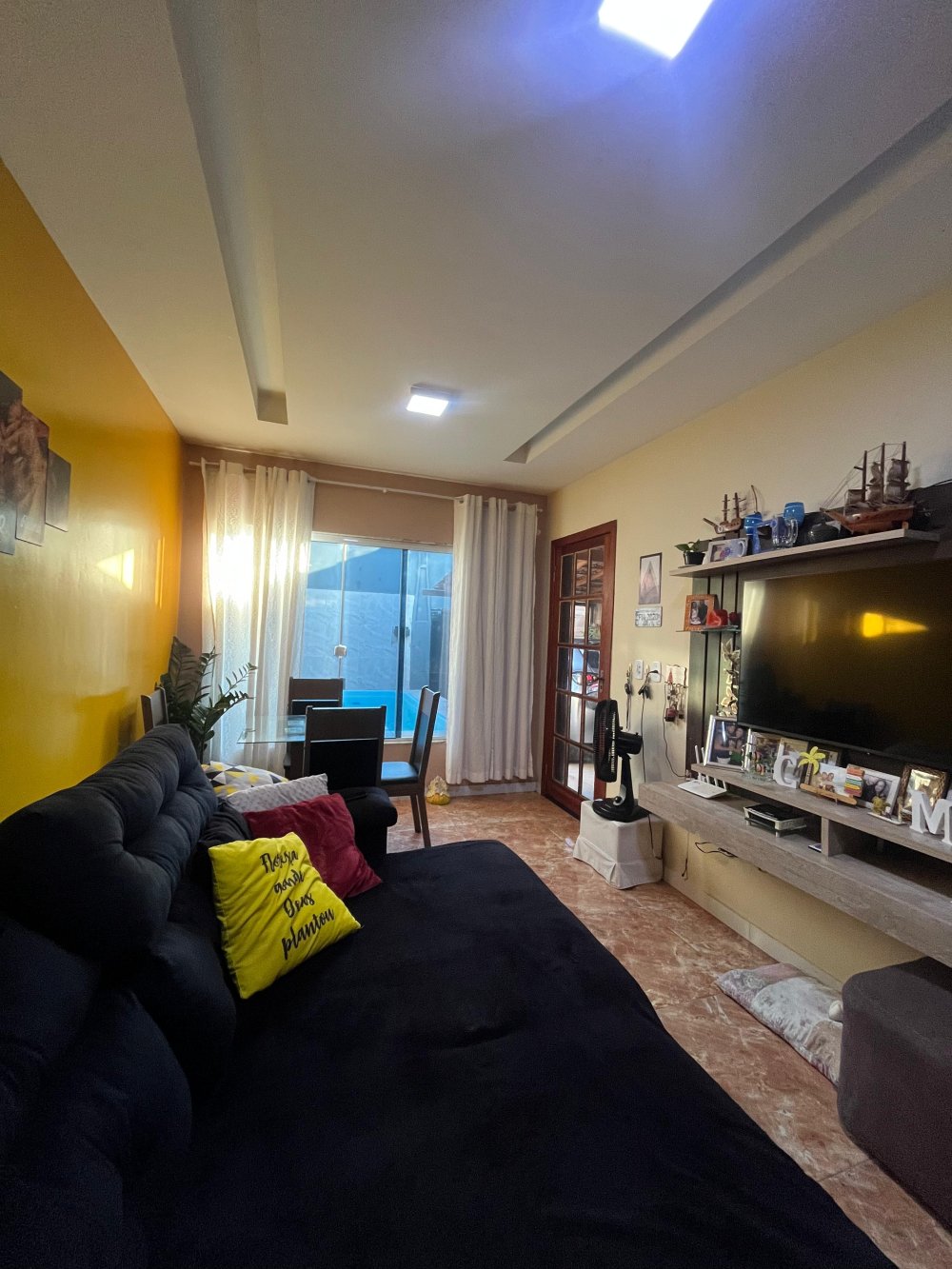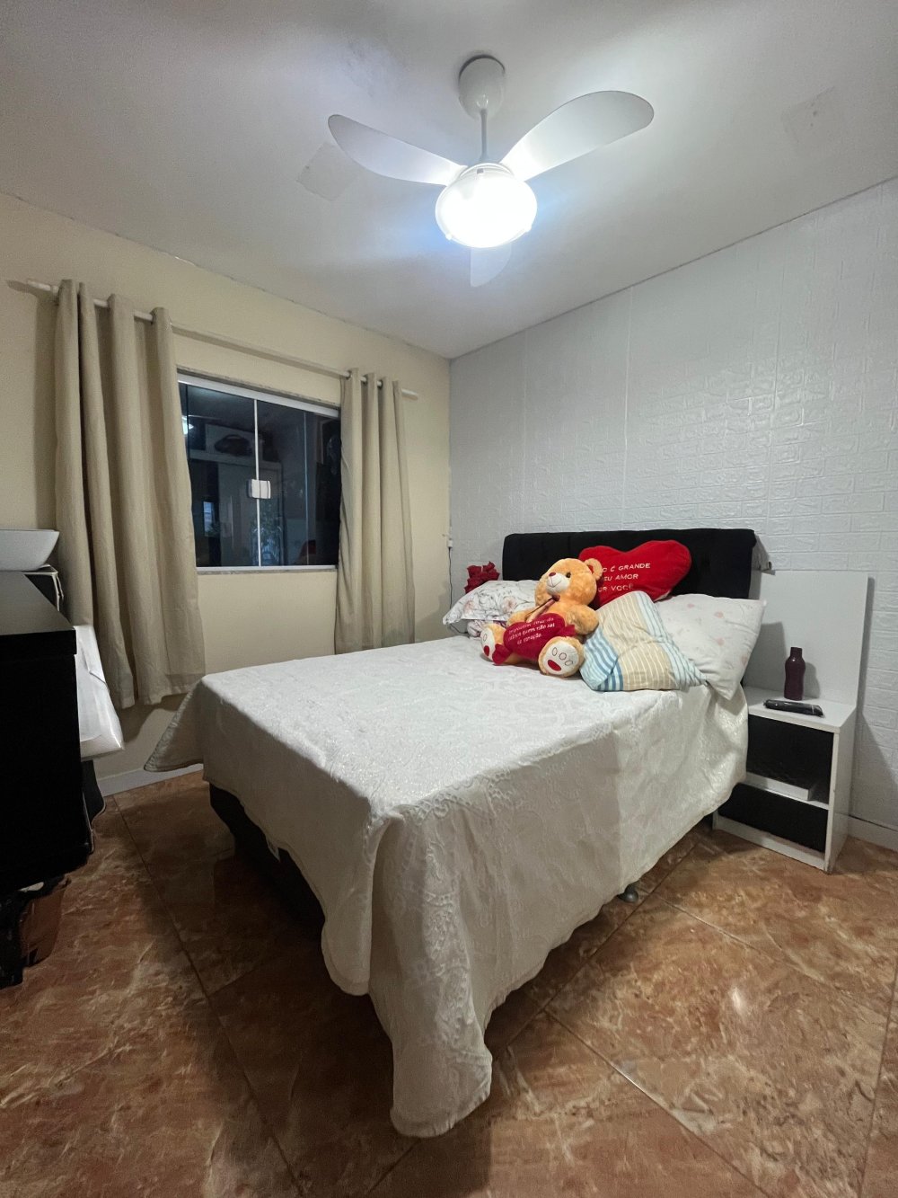 Contém dois quartos, sala, cozinha, banheiro social, área de serviço, área gourmet com piscina e garagem.