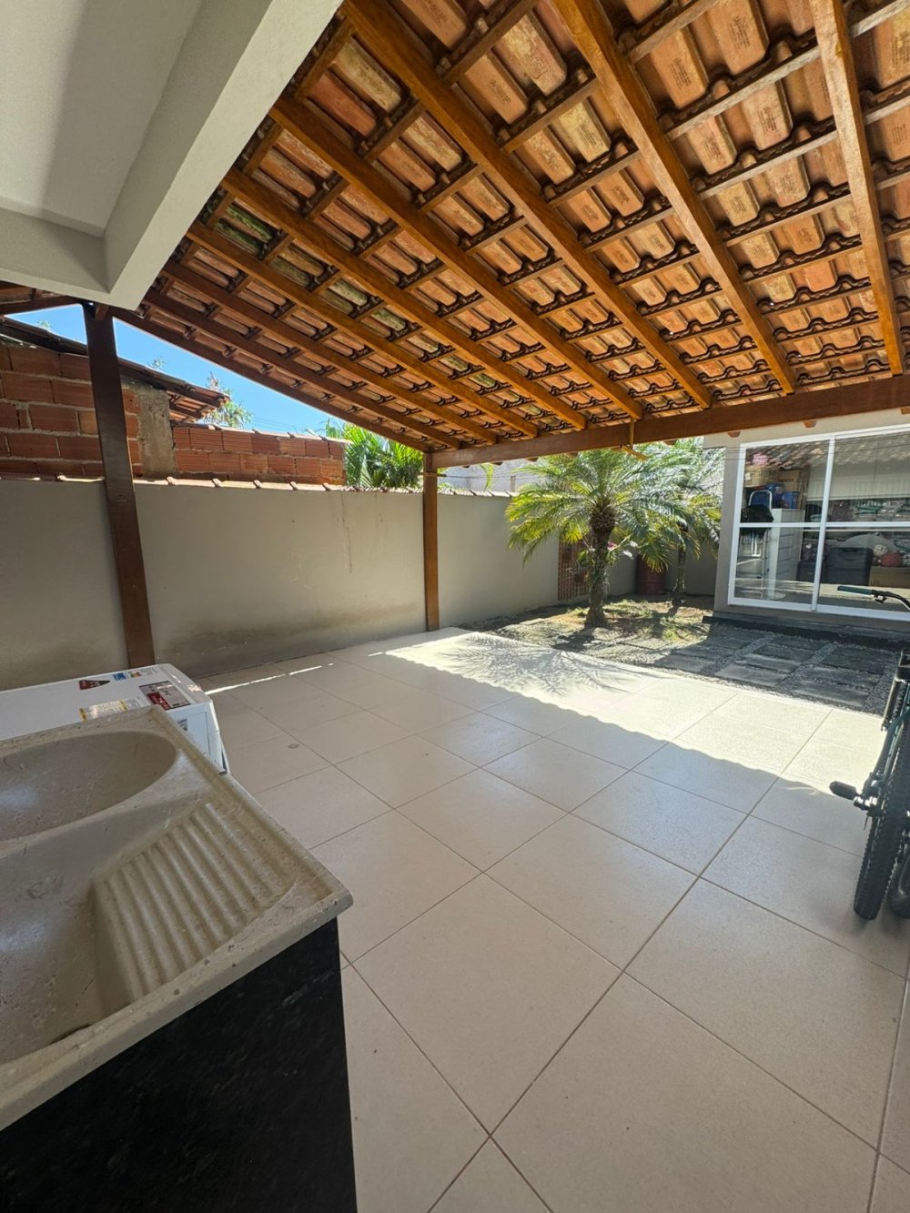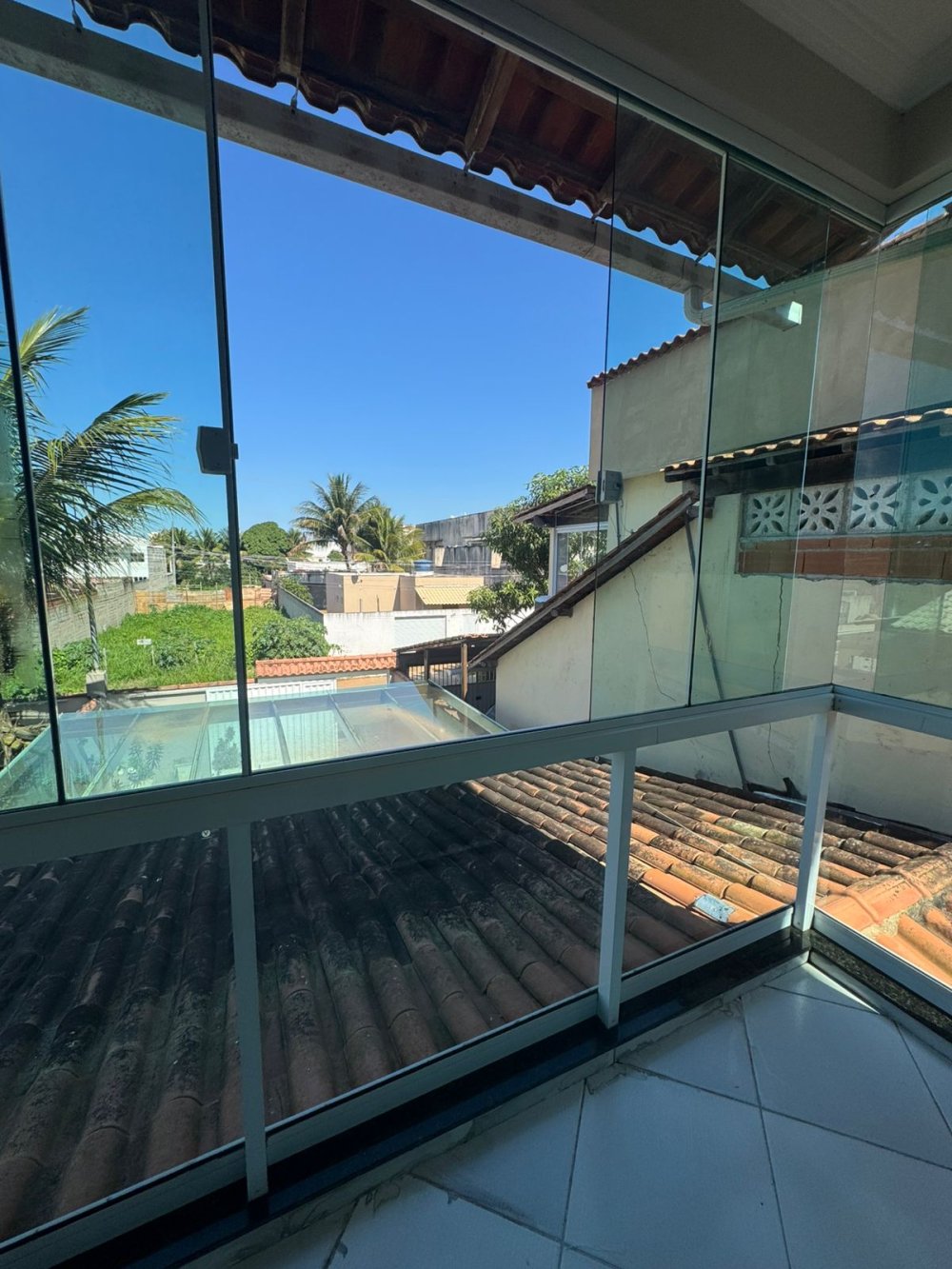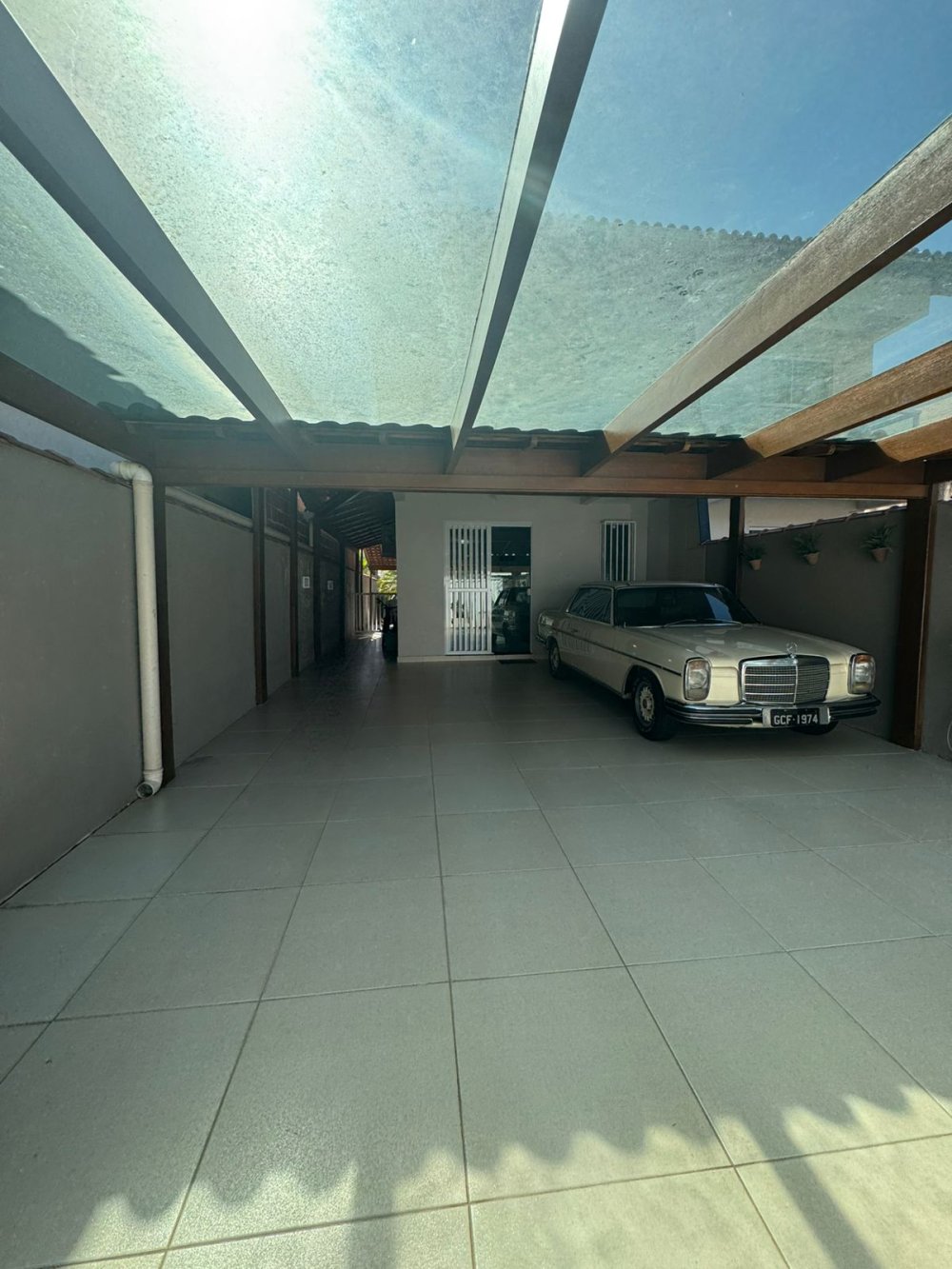 Garagem com cobertura mista: telhado colonial + vidro jumbo 10mm