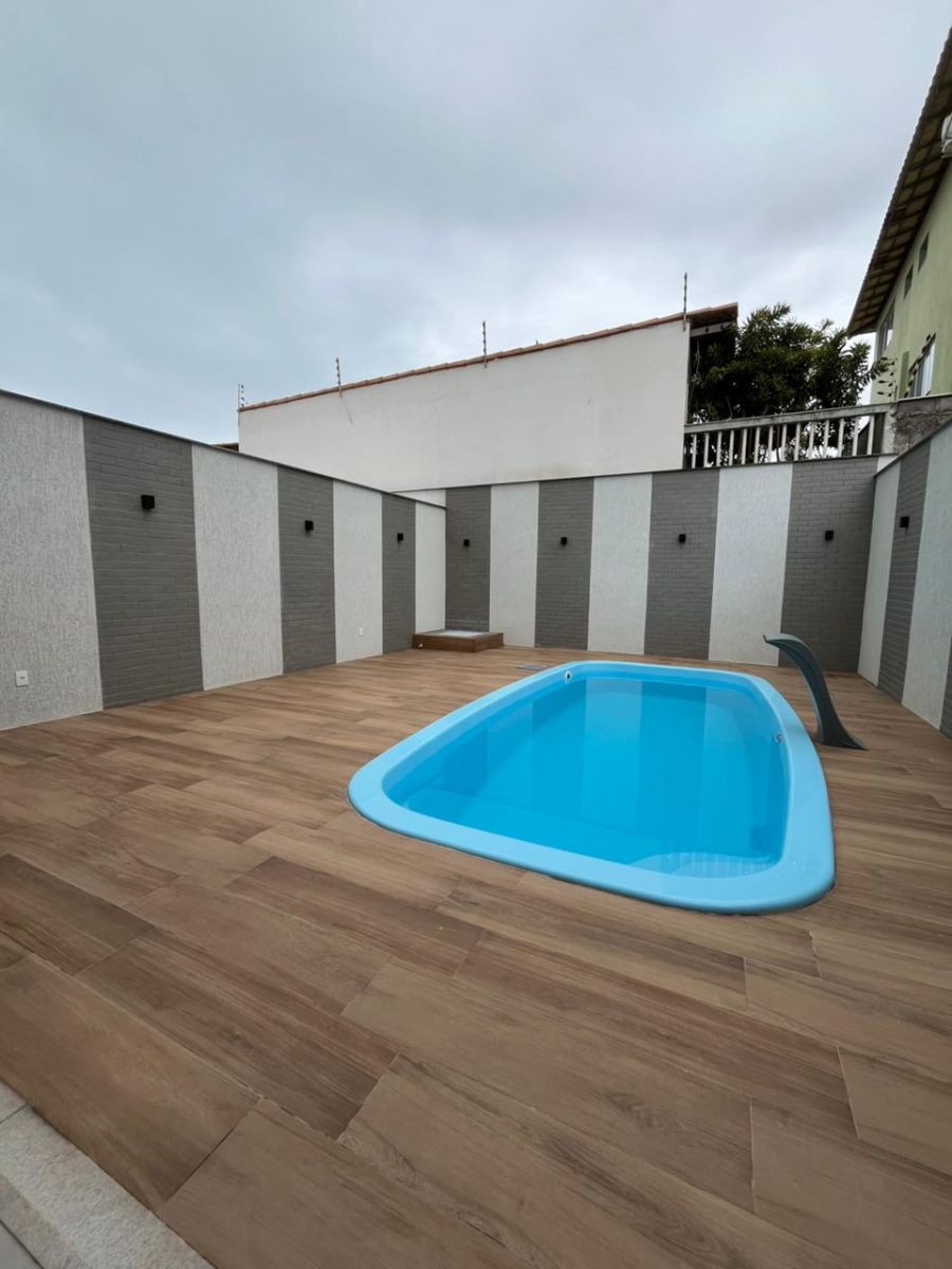 Área de lazer com piscina e espaço gourmet