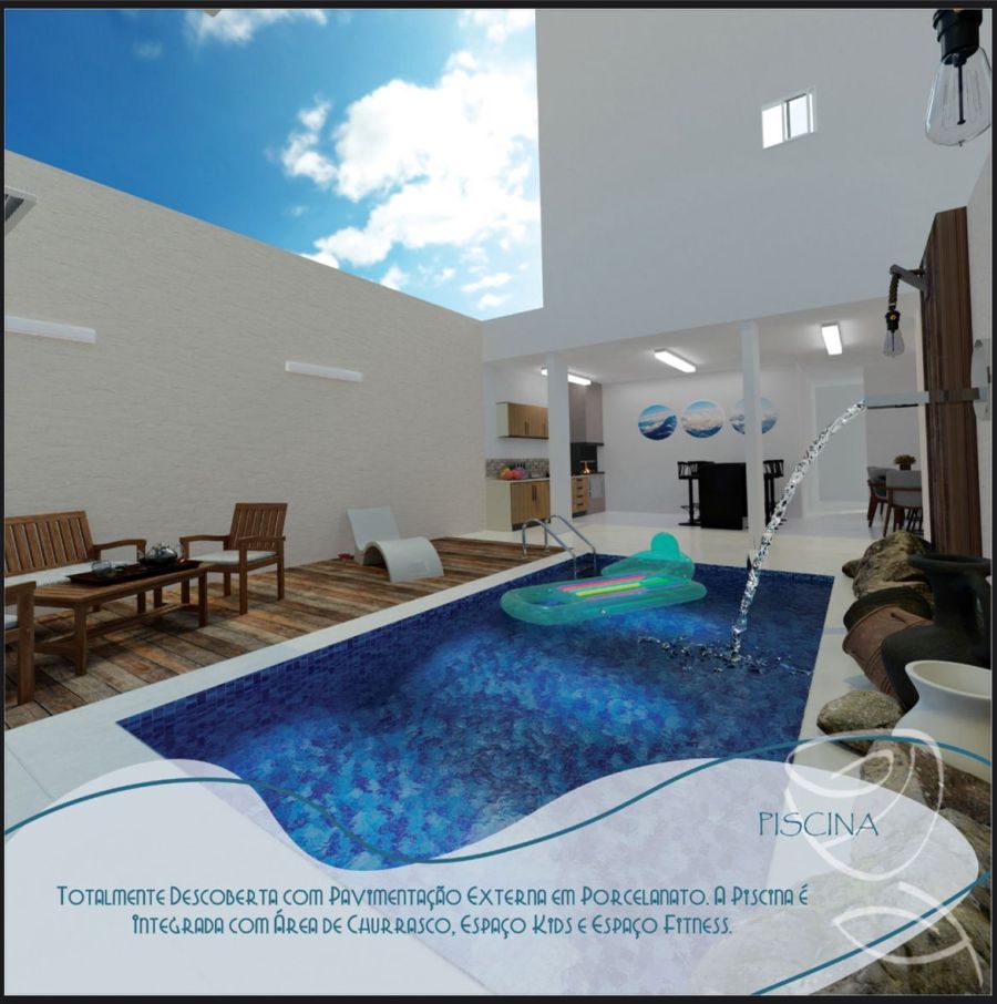 Área de lazer com piscina e espaço gourmet