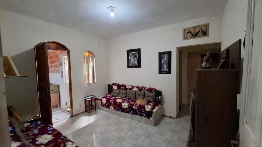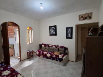 Casa com 3 quartos, sendo 1 suíte, banheiro social, sala, copa, cozinha, área de serviço e varanda.