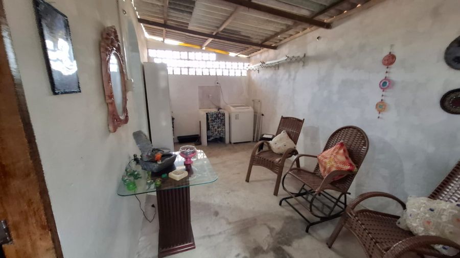 Possui um amplo quintal e com uma área gourmet com lavabo e um quarto pequeno.